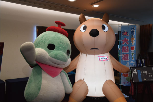 BRTおよび気仙沼線、大船渡沿線の復興を象徴するキャラクター「おっぽくん」の展示があります。