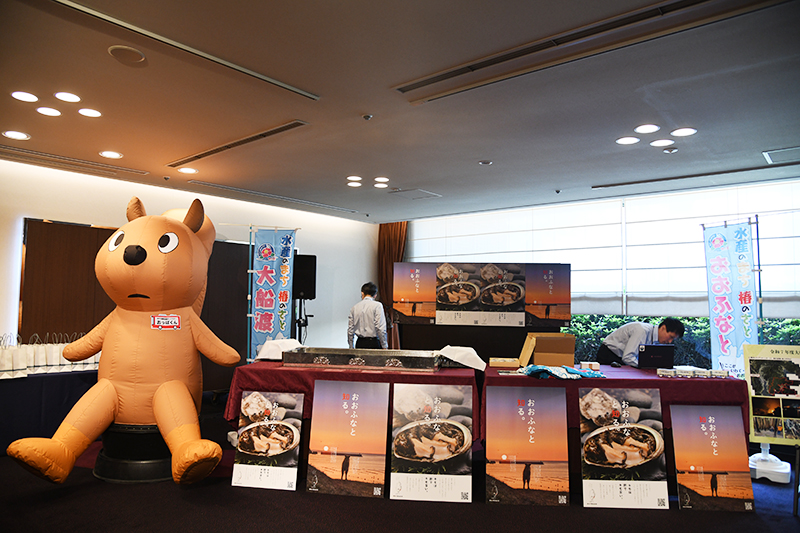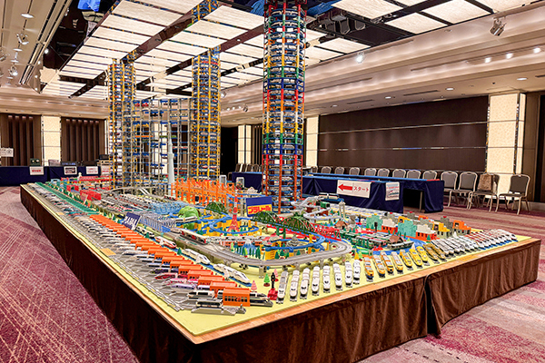 宴会場内に「プラレール」の巨大ジオラマを展示。(長さ7.2m×幅3.6m)