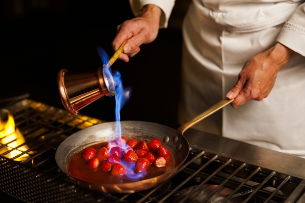 特長02・五感を刺激する美食の演出。シェフの技を、その場に再現。