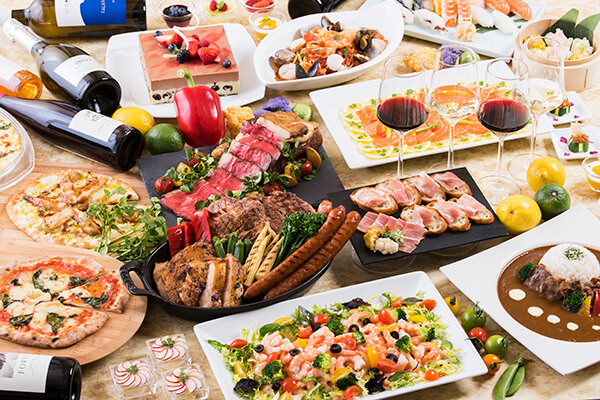 開放的で心地よい空間が広がる店内で、こだわりの料理を思う存分お召し上がりいただけるディナーブッフェ。