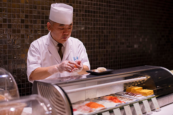 人気のローストビーフなど、ピッツァ窯で焼上げるアツアツのピッツァ、エドモント伝統のカレー、にぎり寿司、前菜からデザートまで約60種類のバラエティ豊かなメニューが並びます。