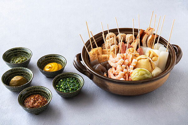 1月のランチブッフェでは、ふっくらと焼き上げた「鱈の天火焼 2種の味噌ソース」や、魚介の旨みを楽しめる「魚介のサルピコン」、さらにお好みの薬味でアレンジできる「ピンチョス風おでん」など、多彩な約60種類のお料理をご用意しております。