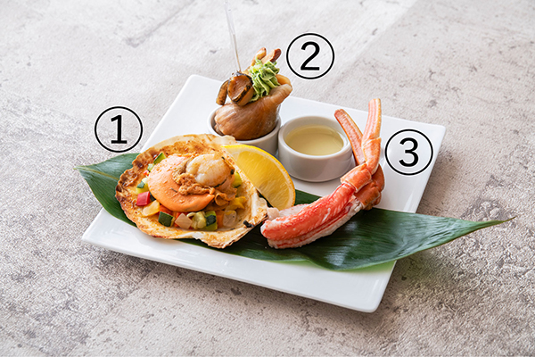 平日限定で、ディナーブッフェ「北海道フェア」を大人またはシニア料金でご利用の方に、北海道の海の幸を贅沢に楽しめる特別な一皿をご提供いたします。(お一人さまにつき一皿)