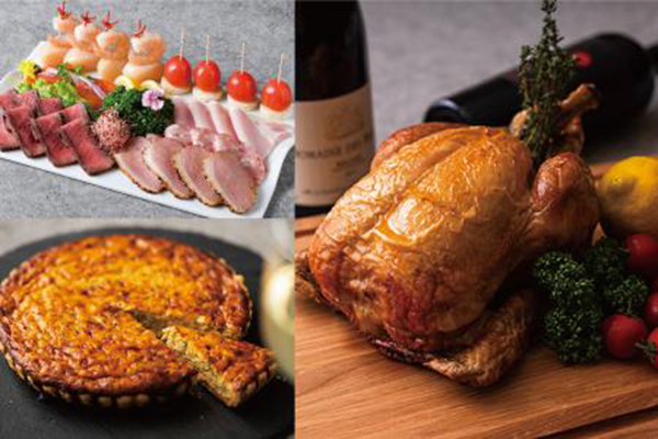 料金 | 【クリスマスデリ】 ・オードヴルプレート ¥6,500 ・ローストチキン ¥4,500 ・タルトオニオン ¥3,200 ・クリスマスデリ3種セットで¥12,500(通常14,200) |