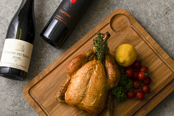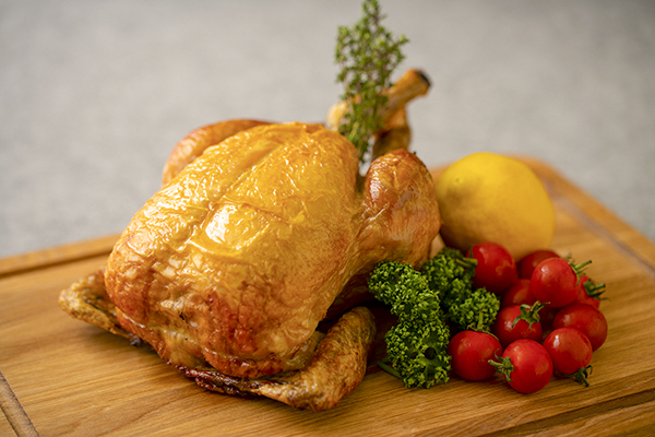 国産若鶏にローリエ、タイム、にんにくを詰めてオーヴンでじっくりと焼上げました。オリジナルスパイスをお好みでつけてお召し上がりください。