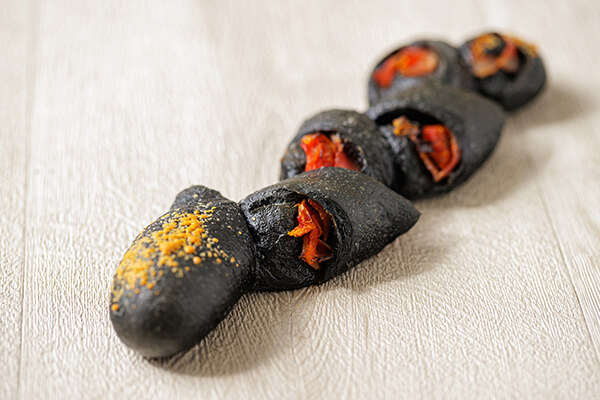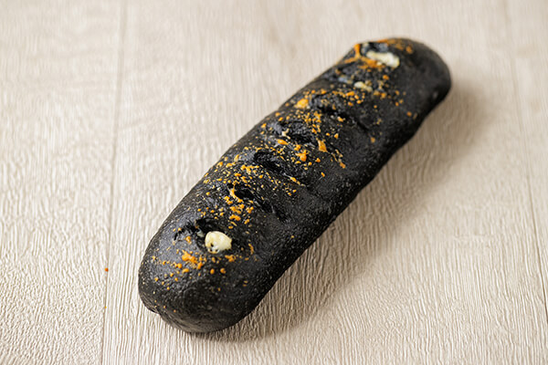 竹炭を練りこんだフランスパン生地で、おつまみにもぴったりなパンをご用意しました。