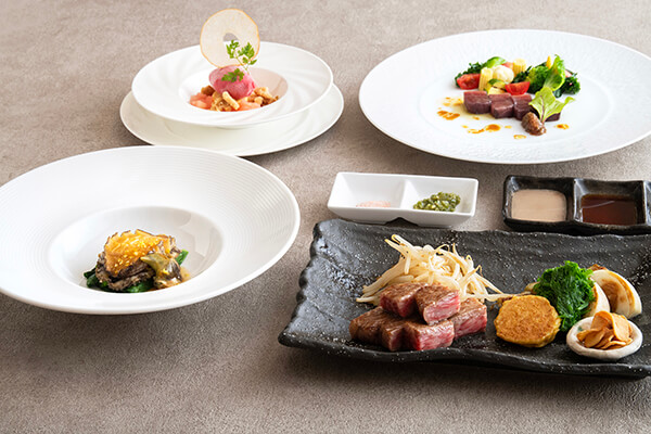 季節ごとに変わるブランド牛を目の前で焼き上げる鉄板焼で存分にお楽しみください。