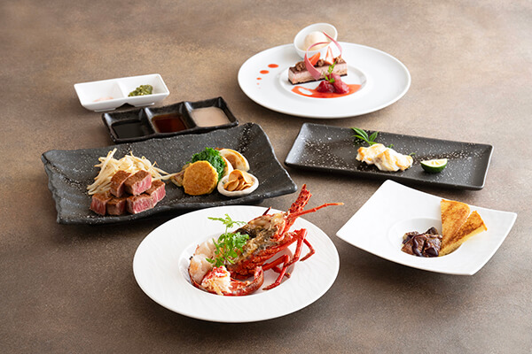 蛤と雲丹の炙りやフォワグラのソテ、イセエビの鉄板焼など、贅を尽くした全7品のフルコースです。