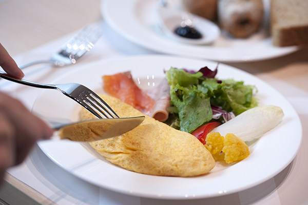 気持ちのよい目覚めの後は、ホテル自慢の約60種のバラエティ豊かな和洋ビュッフェ朝食を召し上がれ。