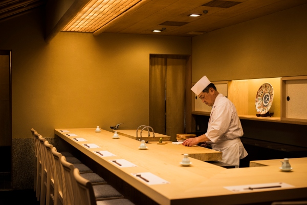 都会の喧騒を離れ、江戸数寄屋造りの「和の空間」で職人技が光る鮨を味わう。